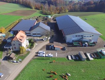 Neubau Durchgang und weiterer Ausbau der Photovoltaik-Anlage auf 3'500 m2 mit einer Leistung von 756 kW. Somit produzieren wir Strom für 180 Haushalte.