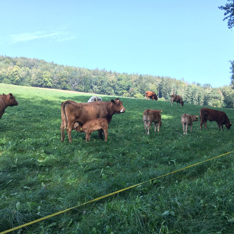 Heute werden auf dem Biohof Klingenberg rund 50 Hektaren Eigen- sowie Pachtland bewirtschaftet. Darüber hinaus haben wir eine Mutterkuhhaltung sowie Weidetruten. Seit 2020 produzieren wir nach Bio-Suisse Standard.