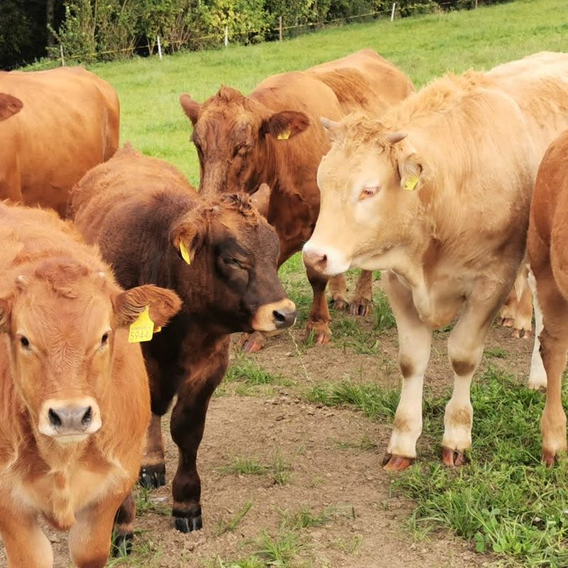 Aktuell haben wir 12 Mutterkühe, einen Stier sowie 12 Kälber. Dazu kommen 120 Truten. Auf ca. 52 Hektaren bauen wir Mais, Weizen, Gersten, Raps, Chicorée und Bohnen an, natürlich alles mit Bio-Zertifizierung.